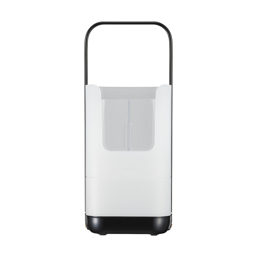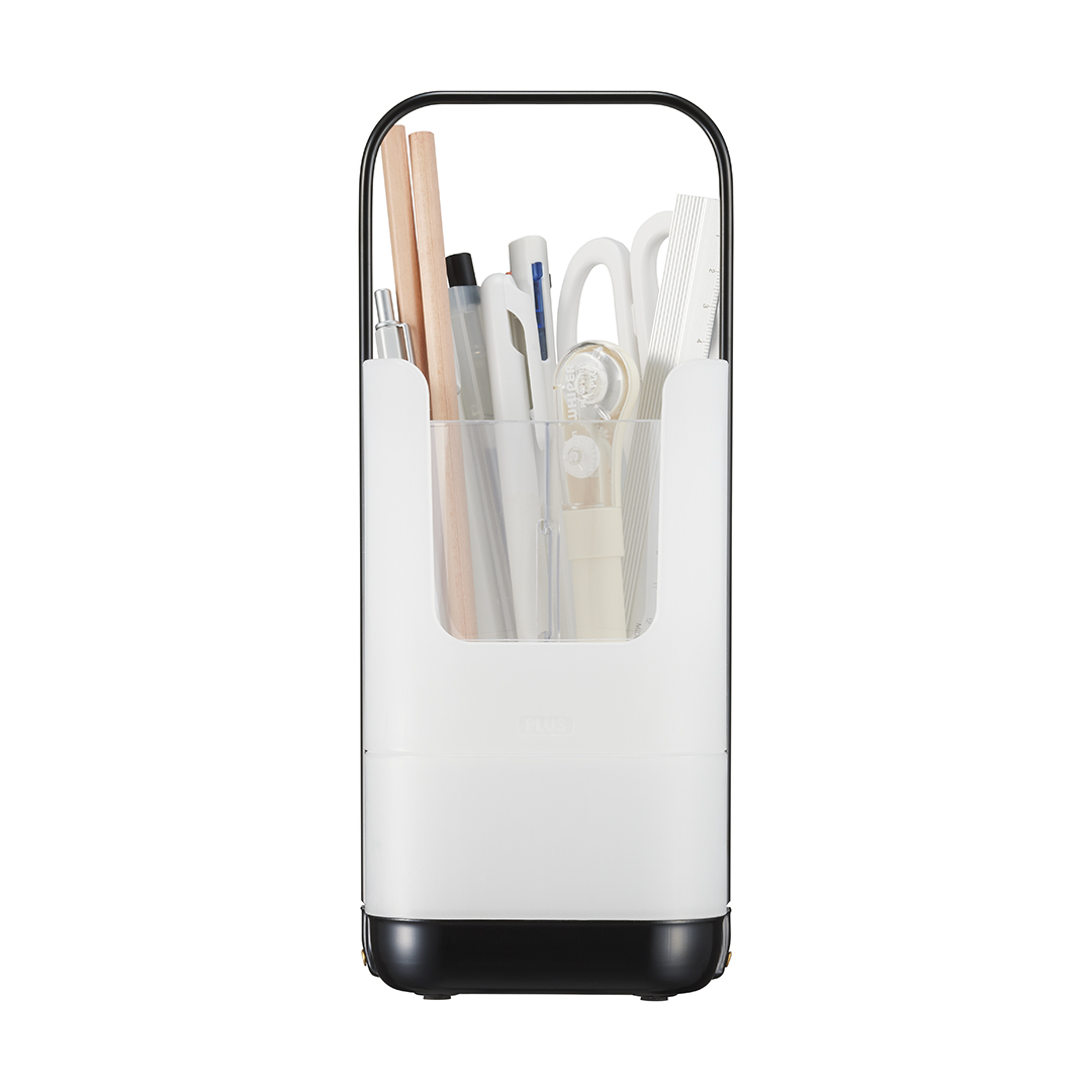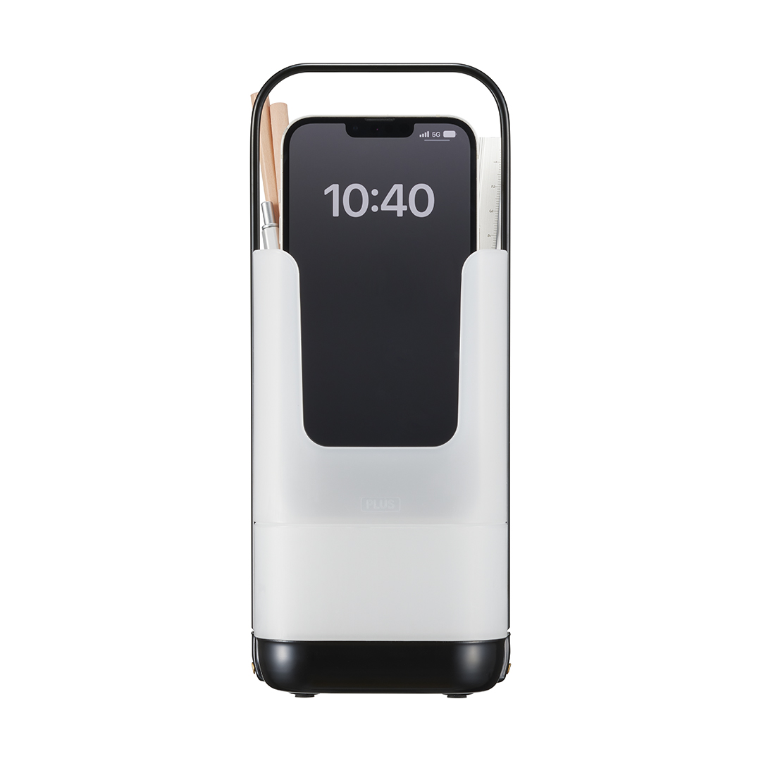 - 本体サイズ:全体外形寸法:W103×D100×H253 mm(持ち手込)、上部収納内寸:W95xD76xH108mm、下部収納内寸:W95xD95xH56mm、スマホスタンド部内寸:W93xD17xH108mm